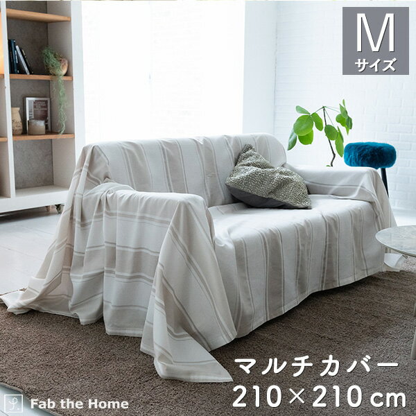 ソファーカバー かけるだけ マルチカバー おしゃれ 洗える 綿100% 「 シックストライプ マルチカバー 」 Mサイズ 約210×210cm ソファカバー ベッドカバー ベッドスプレッド こたつカバー 正方形 コットン 布 汚れ防止 ベッドリネン 上品 洗濯機OK