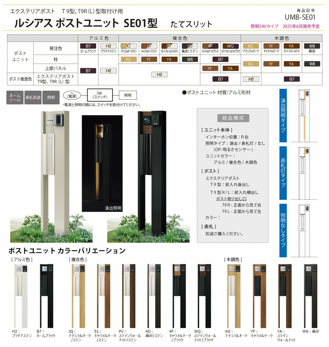 【無料プレゼント対象商品】門柱 ポスト 一体YKK YKKapルシアスポストユニットSE01型 照明なしタイプ本体 木調色ポスト T9型(後出し)機能門柱 機能ポール 一戸建て用 屋外 一体型セット