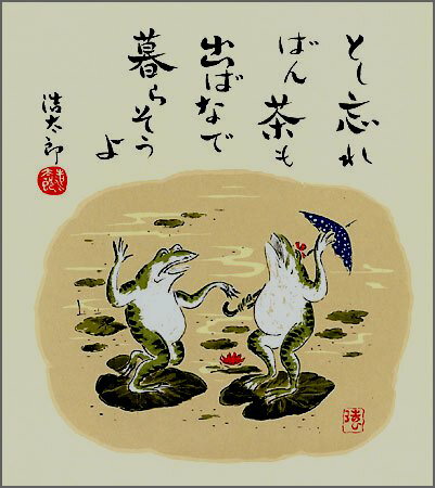 【メール便対象商品/送料無料】招福開運の縁起画色紙18かえる・吉岡浩太郎