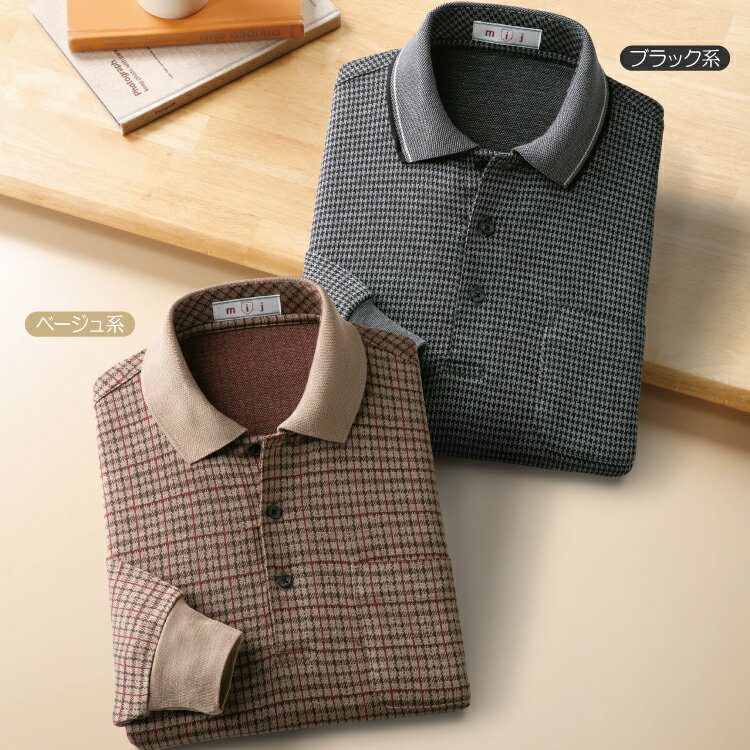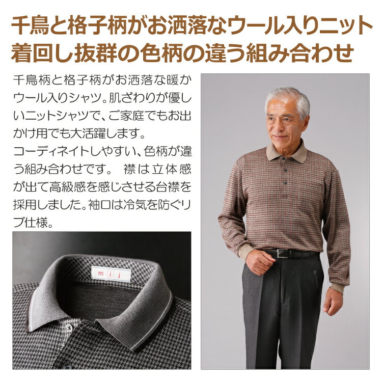 商品紹介 千鳥柄と格子柄がお洒落なウール入りニットシャツ 着回し抜群の色柄の違う組み合わせ 千鳥柄と格子柄がお洒落な暖かウール入りシャツ。