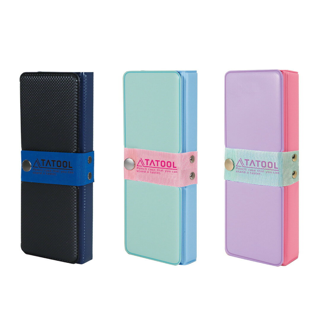 備考/ 立てられるタブレットのサイズ目安:〜11インチ (13インチは横置きのみ)メーカー名/クツワ株式会社 本体サイズ/W9.5cm×D3.9cm×H22.8cm 重量/ブラック:217g ミント/パープル:212g 材質/(表紙)PVC、(成形皿)ABS樹脂、(鉛筆ホルダー)ポリエチレン、(ベルト)ナイロン、マグネット 商品コメント/ タブレットが立てられる1ドアタイプのマグネット筆入です。