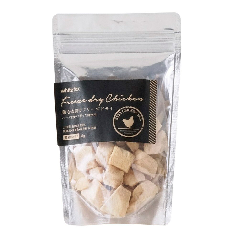 ホワイトフォックス鶏むね肉フリーズドライ ダイスカット45g (犬用おやつ)【犬用、国産、おやつ、WhiteFox】