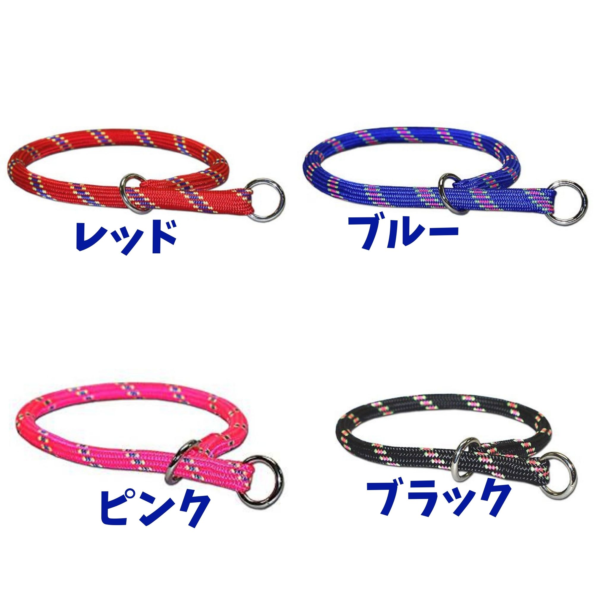 チョークカラー 軽い 毛が痛くない (12-20サイズ) 長毛 丈夫 安全 フルチョーク ロープ 犬用首輪 トレーニング しつけに 送料無料 引っ張り防止 吠え防止 お得 ピンク ブラック レッド ブルー トレーニング Morrco 小・中型犬の長毛種ワンちゃんにオススメ! Morrco (モロッコ) 小型犬ー中型犬 丈夫なマウンテンロープで作られたチョーク・カラーです。