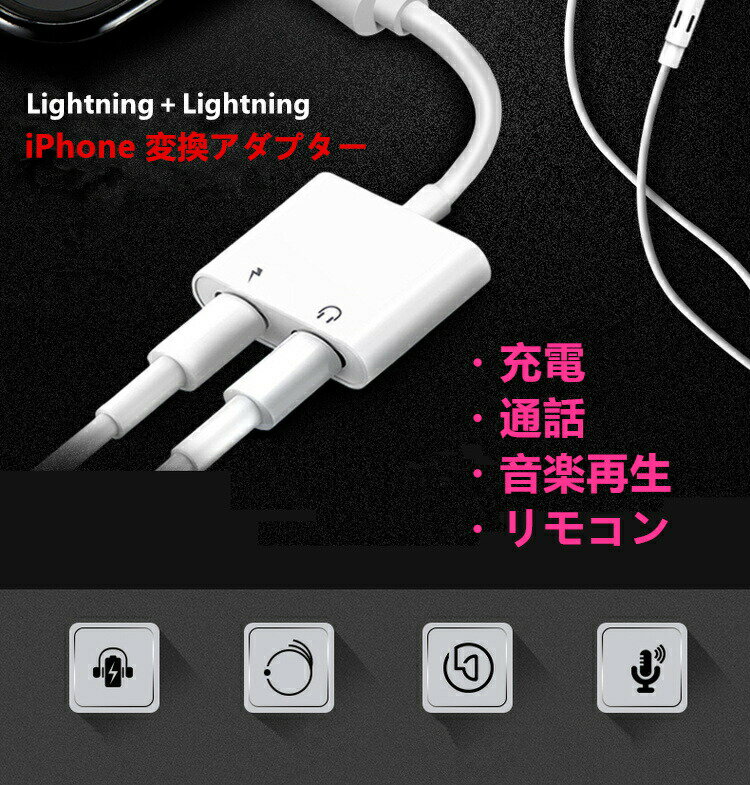 通話可能 iPhone 13 変換アダプター イヤホン Lightning 2in1 iPhone13 mini Pro Max 変換ケーブル iPhone 11 SE3 SE2 XR X XS 8 7 iPhone12 mini Pro 変換 アダプター iPad アイフォン ライトニング 充電ケーブル 通話/リモコン操作/音楽/充電