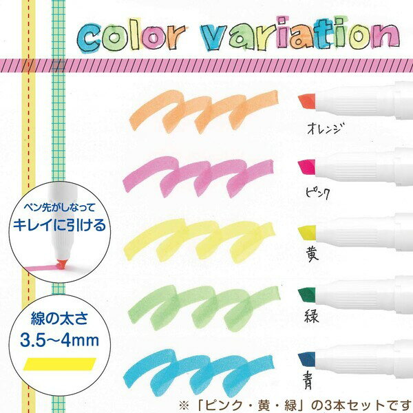 よく使う「ピンク、黄、緑」の3色セット。