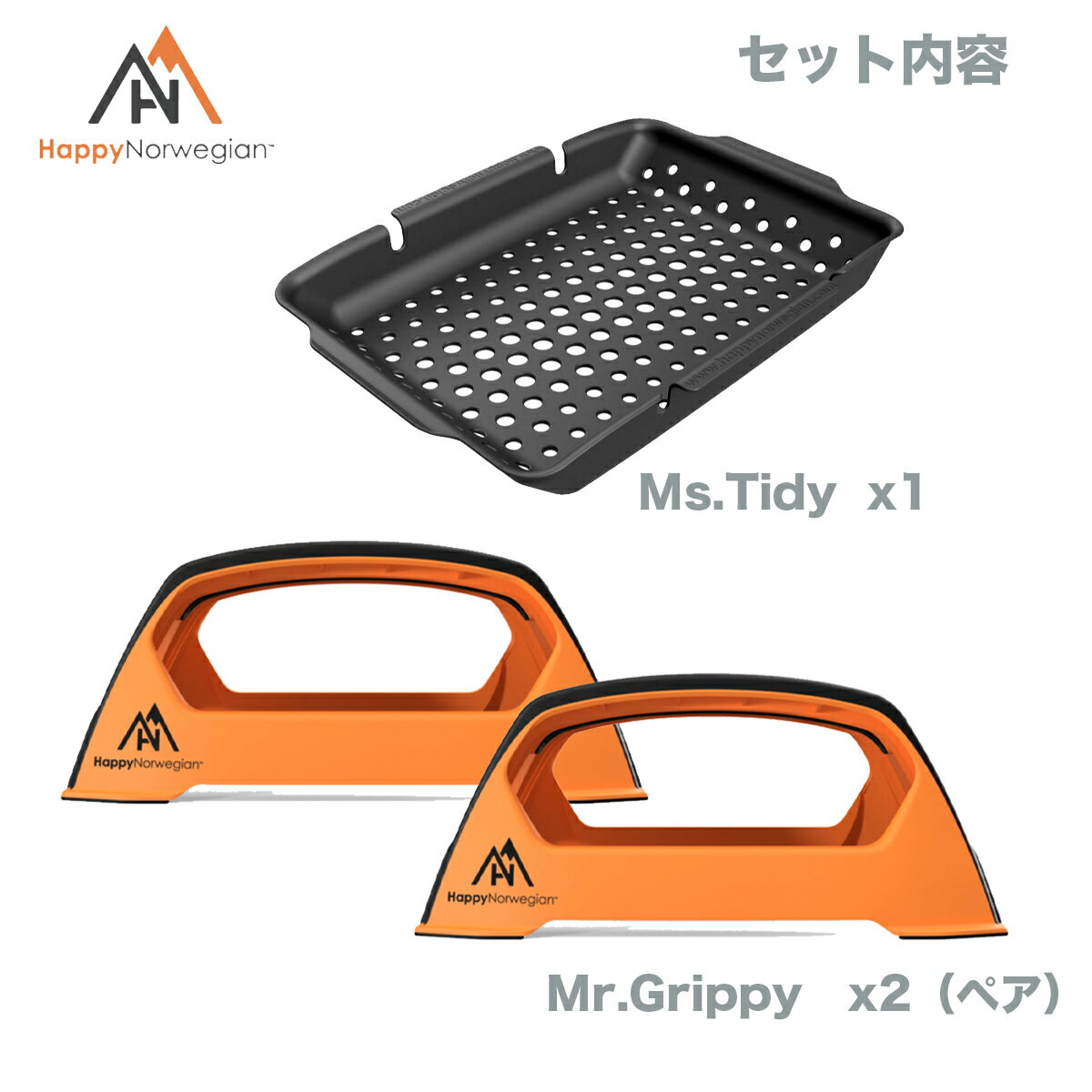 ■HappyNorwegian Mr.Grippy + Ms.Tidy 【内容】 ・Mr.Grippy 2個 ・Ms.Tidy 1個 ●Mr.Grippy(スタンド) 材料:コンポジットおよび高摩擦ゴム クリーニング:湿らせた布で拭き取ります 寸法:L 33 x W 26 x H 16.5 cm 重量:1.3 kg ・コンパクトでポータブル。