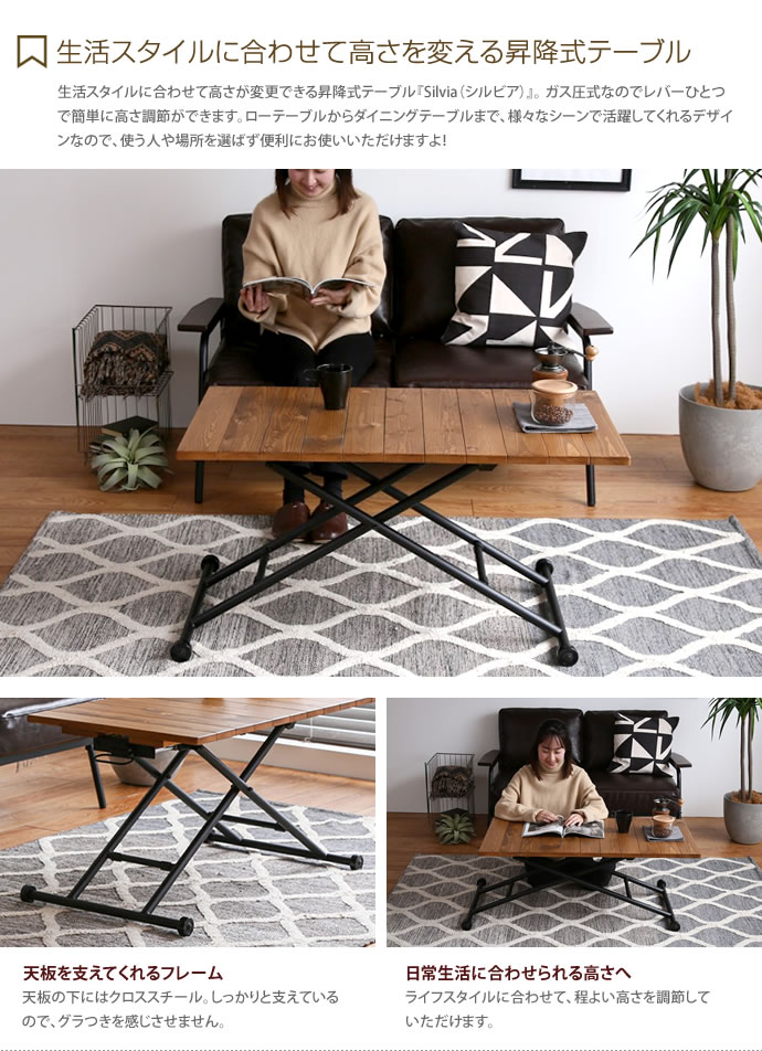 Silvia 昇降式テーブル 幅100cm
