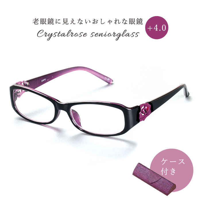 クリスタルローズシニアグラス (RP1586)(+4.0)[ 老眼鏡 眼鏡 おしゃれ レディース 軽量 バラ 花柄 女性 ギフト プレゼント 敬老の日 ワンポイント パープル ケース付き 持ち運び 可愛い おしゃれ 薔薇 ばら ]