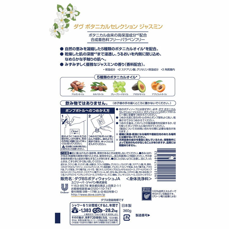 ダヴ ボディウォッシュ ボタニカルセレクション ジャスミン つめかえ 360g だぶ ダブ ゆにりーば unilever dove ボタニカル ボディソープ 保湿 ボディシャンプー アルガンオイル ユニリーバ【D】