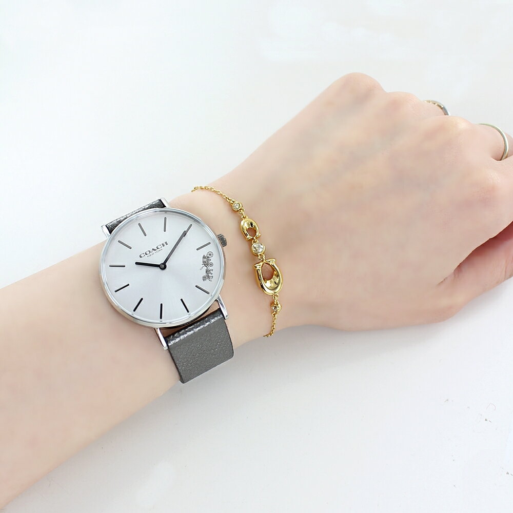 コーチ おしゃれ 可愛いプレゼント ギフトセット 女性 レディース 腕時計 & ブレスレット メタリック グレー 革ベルト 時計 女友達 誕生日 ギフト こーち 合格 入学 卒業 社会人 記念日 母の日 父の日 2022