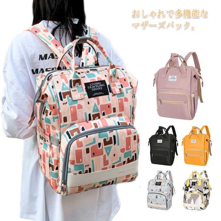 【送料無料】マザーズバッグ ママバッグ リュック 大容量 多機能 折りたたみ式ヘッド付き 2way ベビーカー取り付け可能 USBポート 保温保冷 軽量 防水 おむつ替えシート バックパック 旅行 おしゃれ 子育て レディース 通勤 母の日 出産祝い ギフト プレゼント お祝い