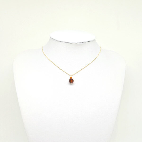 バルト海沿岸で採れる天然琥珀・バルティックアンバーとカーネリアンのペンダントトップに幅1mmの細めのチェーンを合わせております。