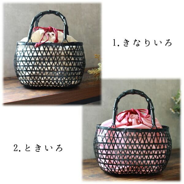 サイズ 巾:約25cm 高さ:約15cm マチ:約12cm 取っ手:約12cm※取り外し可 素材 籠:天然素材 巾着:綿麻 ご注意事項 ※商品のお色味は柄のアップ画像をご参照ください。