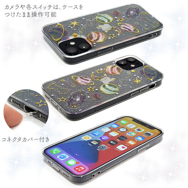 メール便送料無料【 iPhone12mini プラネタリウムソフトクリアケース 】 12ミニ ケース カバー 2020年発売モデル シンプル スマホカバー スマホケース バックカバー バックケース おしゃれ かわいい 普段使い キラキラ ラメ 大人かわいい ラメ 星座 夜空