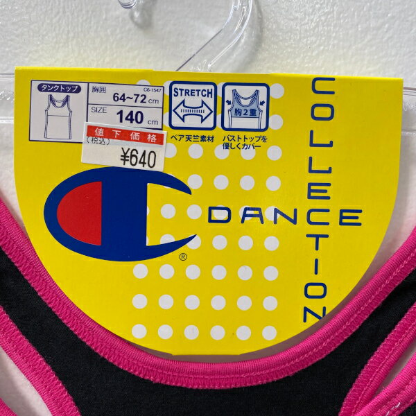 【アウトレット品】 Hanes ヘインズ Champion DANCE COLLECTION タンクトップ 140cm 黒×ピンク ブラック ピンク j2688