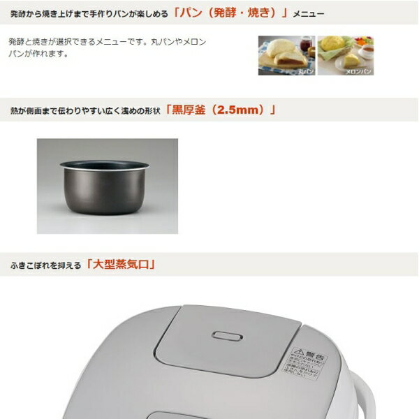 ギフトサービスについて 楽天国際配送対象店舗 (海外配送) Rakuten International Shipping・商品名: 象印 マイコン炊飯ジャー『極め炊き』(3合炊き/ホワイト)・型番: NLBD05-WA・JANコード: 4974305219527・販売元: 象印マホービン(株)【特徴】● 高火力で炊き続ける「豪熱沸とう」&ハイパワー495W(最大電力)● いろいろなご飯が炊ける専用のメニューがあります● ふたヒーターつきでふっくらおいしい「全面加熱」● 熱が側面まで伝わりやすい広く浅めの形状「黒厚釜(2.5mm)」● ふきこぼれを抑える「大型蒸気口」● 本体カラーはホワイト【仕様】■ 炊飯容量(白米):0.09〜0.54L(0.5〜3合)■ 最大炊飯容量:0.54L以上0.99L未満■ 電源:交流 100V 50/60Hz■ 消費電力:495W■ 1回あたりの炊飯時消費電力量:93.7Wh ※1■ 一時間あたりの保温時消費電力量:9.37Wh ※1■ 省エネ基準達成率:102%(エコ炊飯)■ 年間消費電力量:37.2kWh/年(エコ炊飯)■ 炊飯方式:電磁誘導加熱方式(IH)以外■ 外形寸法:(約)幅23.5×奥行32.5×高さ19.5cm(ふた開き時の高さ約36.5cm)■ 質量:約2.7kg■ 付属:立つしゃもじ、計量カップ2種(白米用、無洗米専用)、取扱説明書※1 消費電力量は、炊飯量、ご使用メニュー等によって異なります。