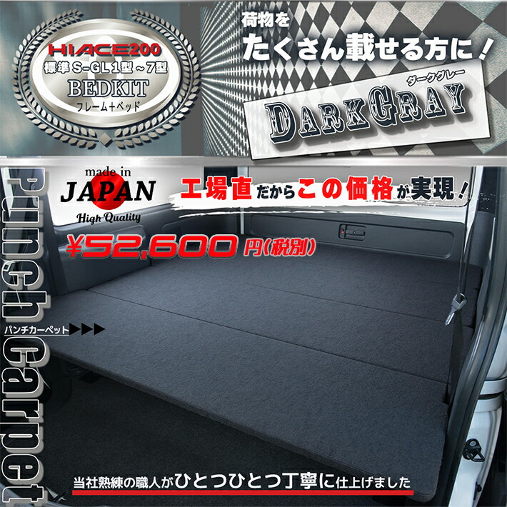 ご注文前に必ずご確認ください! 弊社のベッドキットは、ハイエース200のボディ(標準・DX・ワイド)により形状が異なるため、異なったタイプのベッドを選んでしまうと取付できません。