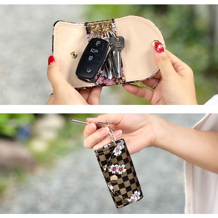 キーケース 4連 西陣織 スマートキー 三つ折り レザー 鍵入れ 鍵 カギ 収納 スリム コンパクト キーホルダー 4連キーケース 和柄 着物 宵