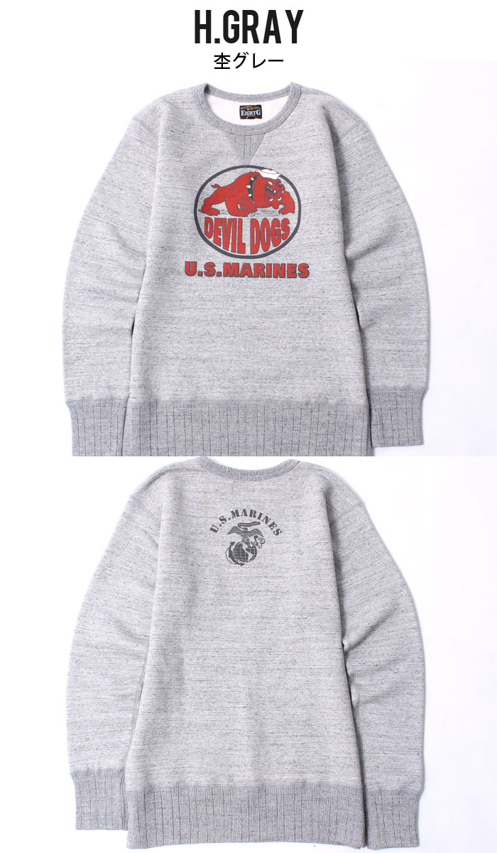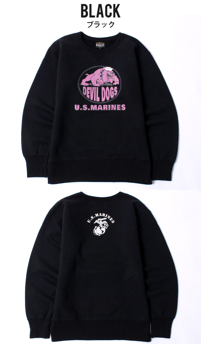 スウェット メンズ ミリタリープリント アメカジ 長袖 プリント 綿100 プルオーバー スエット トレーナー ブルドッグ 防寒 起毛 国産 日本製 おしゃれ 大人 エイトジー EIGHT-G CREW SWEAT DEVIL DOGS 8SW-16