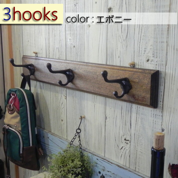 【3連 装飾無し エボニー色】 ハンガーラック 壁掛け 木製 帽子掛け ウォールハンガー コートハンガー おしゃれ 壁掛けフック 男前家具 インテリア 収納 可愛い ウッド アンティーク風 壁掛け収納